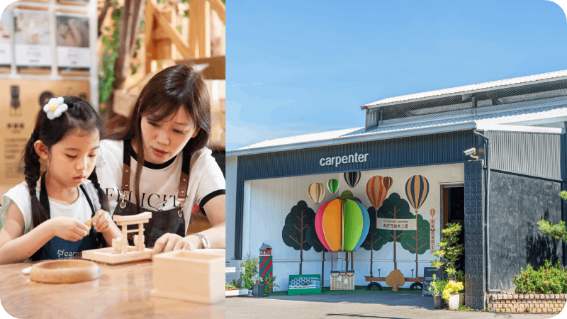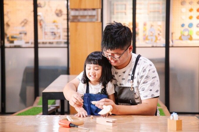 園區內有50幾種DIY體驗課程可以挑選製作,戶外還有大草皮提供多種親子互動遊具可以遊玩。