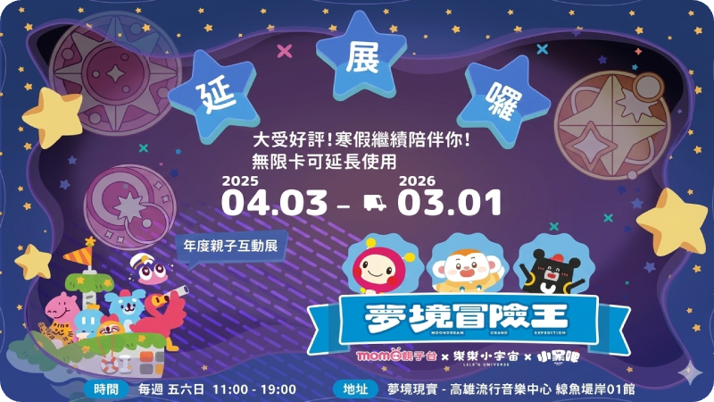 即日起至2026/3/1,每週五、六、日,高雄流行音樂中心鯨魚堤岸01館「夢境現實 沉浸式劇院」,等你來冒險!