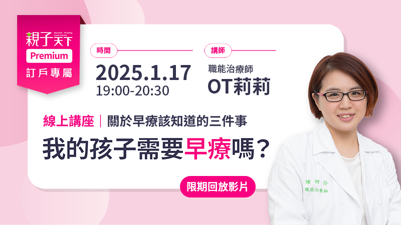 這場線上講座都可以獲得解答。「早期療育」又稱早療,當孩子發展慢了、卡關了,早療在6歲黃金期前提供幫助,讓孩子跟上發展能力。