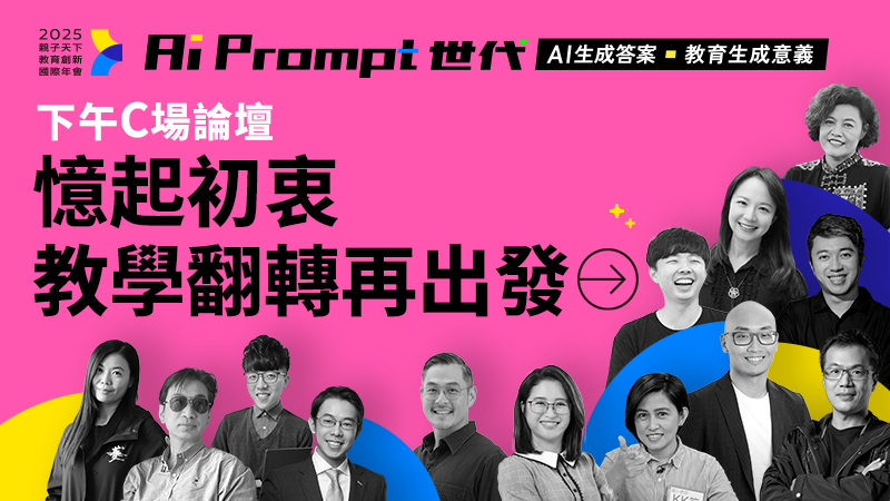 AI Prompt世代,知識獲取再也不稀奇,教育的意義在於老師如何點燃學生的學習動機與生命熱情。回想當年你為何成為老師?曾讓你熱血沸騰、感動落淚的那堂課是什麼?今年,我們邀請老師們重返學生身分,透過一場場演講體驗與對話,重新思考教學的新可能。