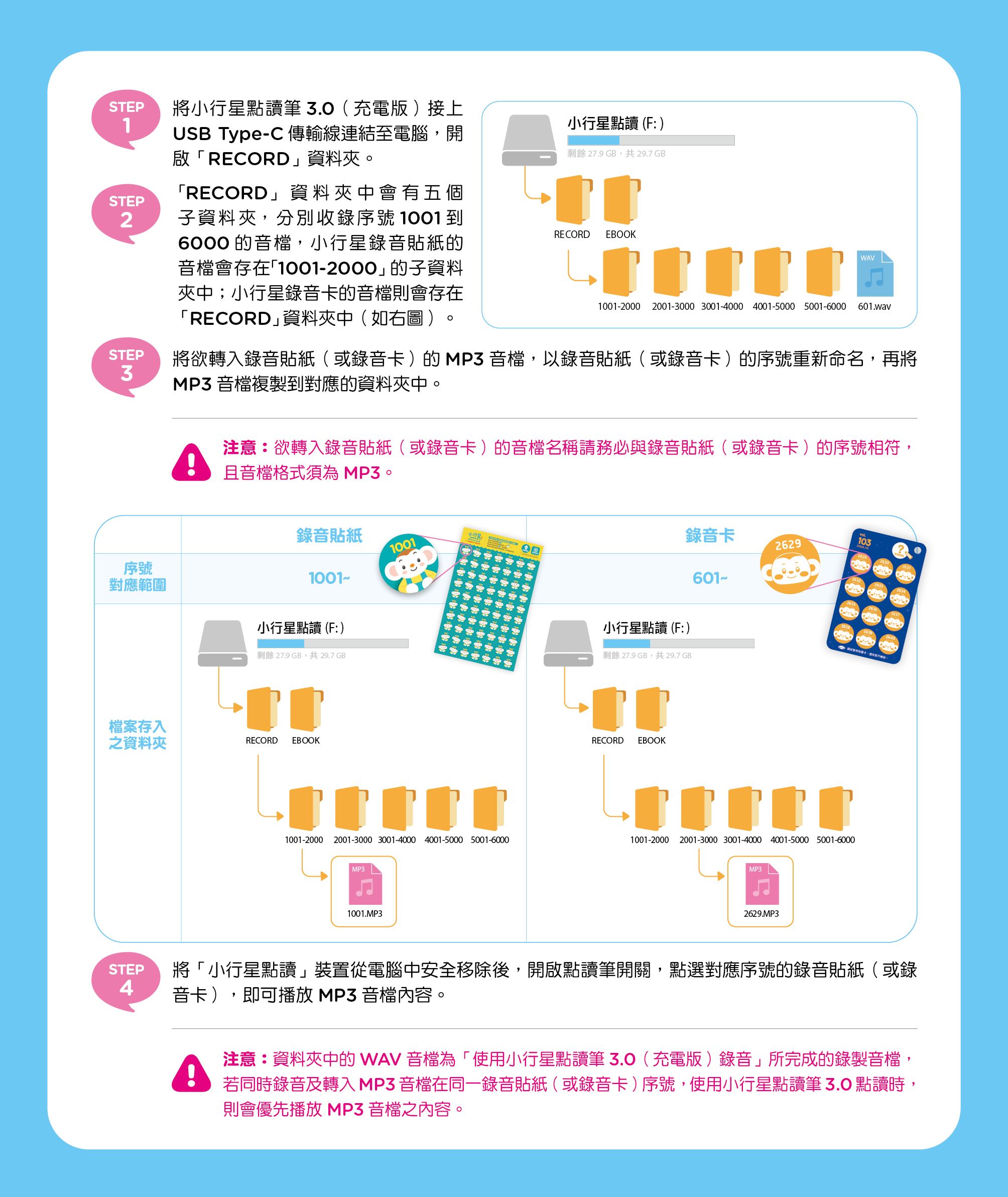 請根據您的點讀筆版本,依照以下步驟,完成mp3檔的轉錄。