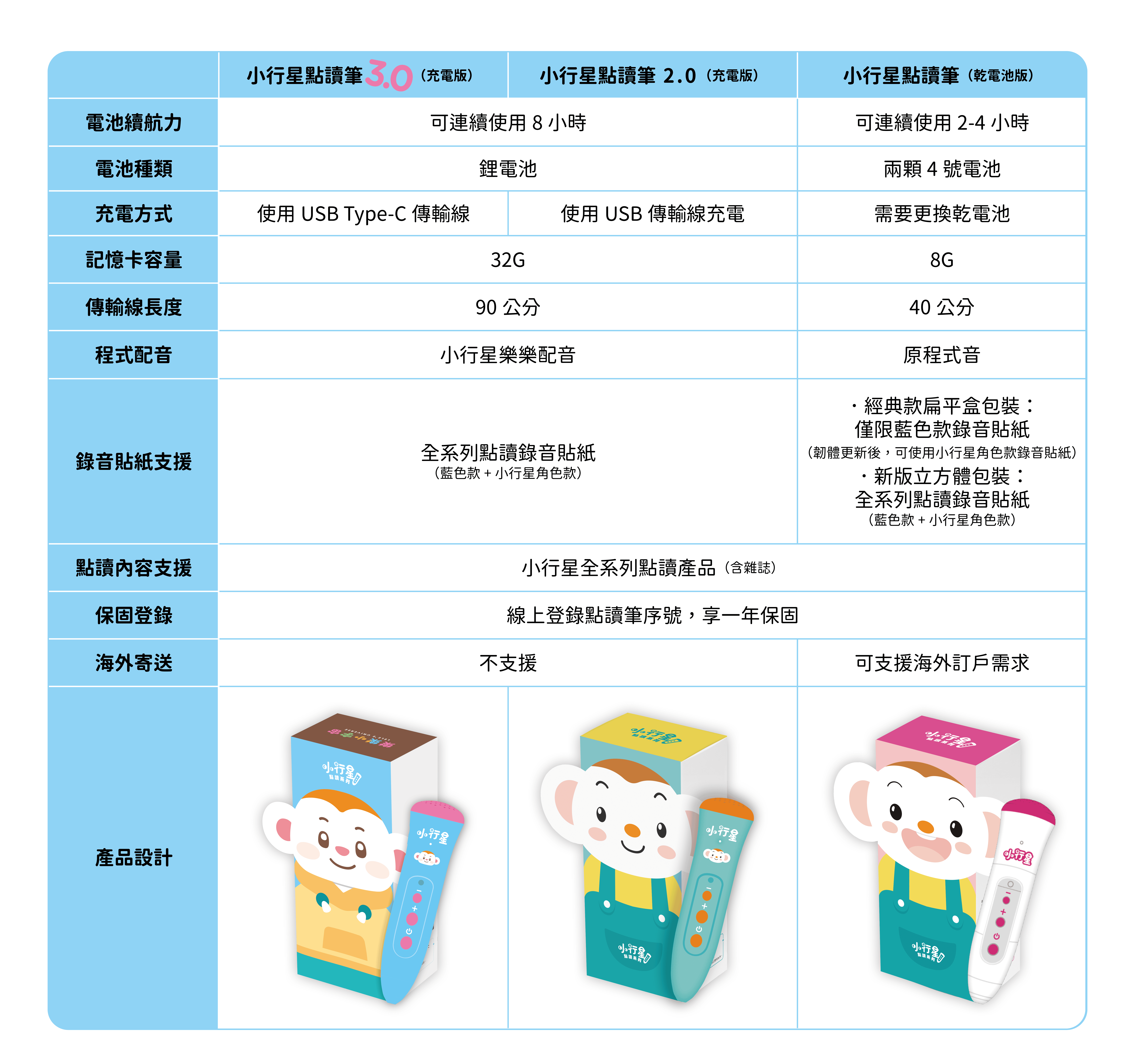 (3) 搭配點讀筆:限搭配小行星點讀筆,可下載點讀專用音檔,讓孩子體驗可互動的閱讀樂趣,激發自主學習的動機。每期可點讀內容為:小行星主讀本、點讀ABC。更多說明可參考關於點讀音檔下載。