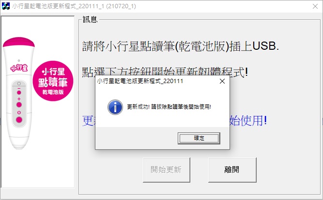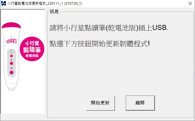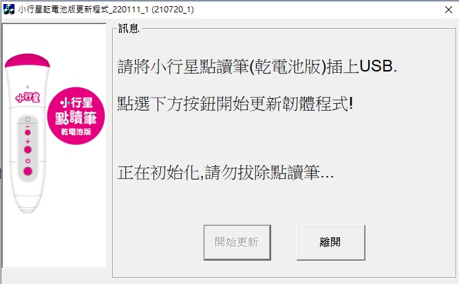 *執行更新時,請勿拔掉點讀筆的USB傳輸線。