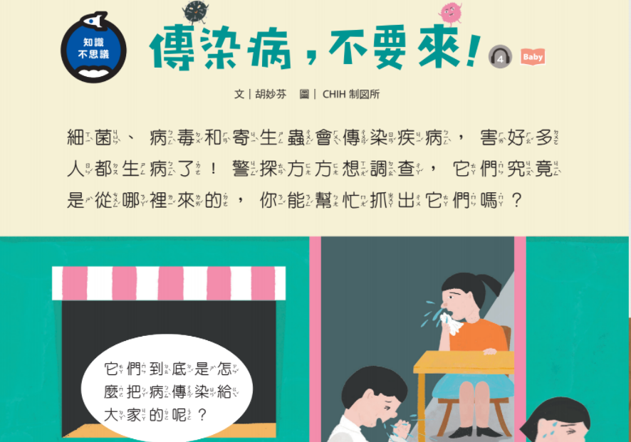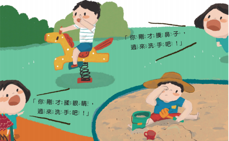 面對年紀較小的幼兒,艱澀的知識難懂,透過淺顯易懂的防疫繪本,帶大家建立良好衛生習慣。