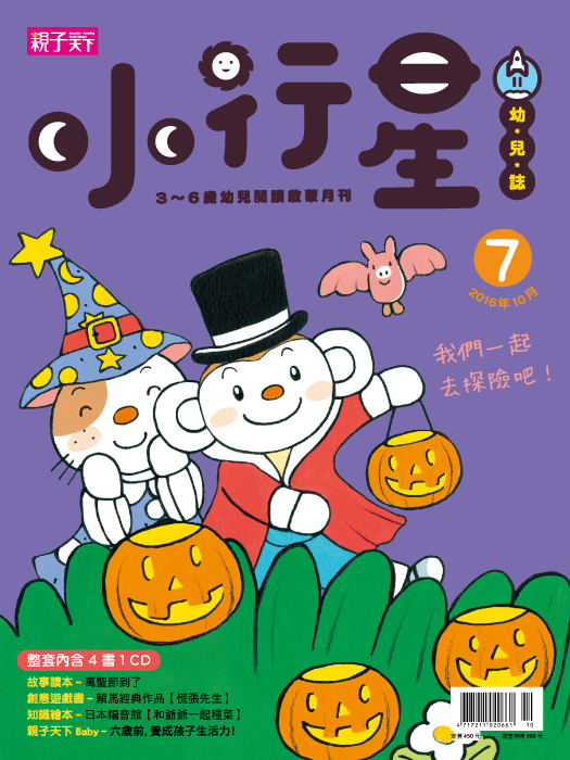 在十月秋高氣爽的季節裡,最適合帶孩子外出走走,快樂體驗生活的樂趣喔!《小行星幼兒誌》本期新增「臺灣好好玩」單元,要帶孩子前進彰化王功附近的潮間帶,體驗採蚵的歷程和樂趣,以及「食物多奇妙」單元,邀請大家一起來歡慶萬聖節,先到蔬菜園找南瓜,再動手做南瓜燈和餅乾,從製作的過程中,享受認知學習的樂趣。還有「生活故事」單元,幼兒發展專家廖笙光從同理孩子,告訴孩子如何養成早睡早起的好習慣。