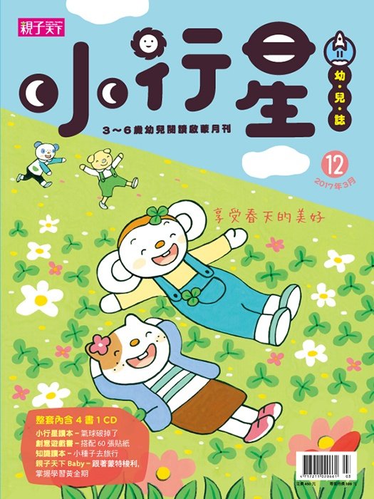 三月春暖花開,草木欣欣向榮,《小行星幼兒誌》特別以春天為主題,帶領孩子唸唱春天的小詩,動動身體模仿花朵綻放的姿態,探索小蜜蜂採蜜的特性,一同快樂徜徉在如詩如畫的大自然中,感受春日的美好。 本期還有孩子的最愛,可以走到哪玩到哪的《創意遊戲書》,也特別邀請幼兒能力發展專家袁巧玲博士,設計與春天相關的遊戲題,引導孩子一邊作答,一邊留意生活中有哪些春天帶來的訊息,豐富孩子的視野,觸動更多的想像力。 春天到了,百花盛開,知識讀本《小種子去旅行》也以「植物」為主題,運用大量的照片完整呈現種子傳播的風景,有靠著風輕輕吹,就能飄到遠處找到新家的白色蒲公英;有順著水流漂啊漂,漂到岸上生根發芽的椰子樹;有不費力氣沾附在動物毛皮上,搭便車就能找到新家的大花咸豐草;還有包在果實裡,被動物吃下肚,隨著糞便排出來,隨機落在哪裡,就在哪兒生長的雀榕種子。許多路邊常見的小花小草既沒有手也沒有腳,還能利用哪些巧妙且奇特的方式傳播種子呢?一起跟著這些可愛的小種子去旅行,發現更多植物的奧祕,體會生命的神奇吧!