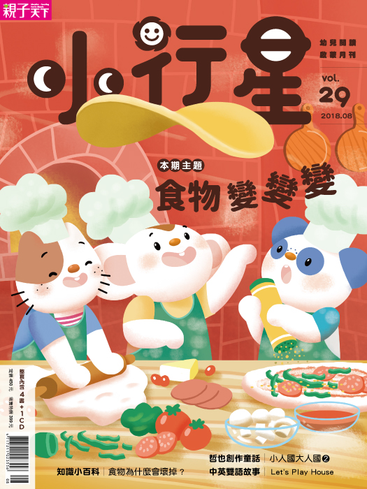 良好的飲食習慣需從小建立,避免暴飲暴食,危害身體健康。八月號《小行星幼兒誌》特別以「食育」為主題,幫助小朋友建立良好的飲食習慣和概念,並提醒大家夏天的食物保存方法,避免放在冰箱太久變質不能吃,希望大家吃得健康也安心!此外,均衡飲食是小朋友健康成長的必要條件,蔬菜更是食材的要角之一,從觀察菜園到實際體驗簡單料理的過程,能提高孩子的參與度,也減少抗拒吃青菜的心理反應。跟著本期《小行星幼兒誌》樂樂、心心、康康和奇奇的腳步,小朋友也能輕鬆擁有「天天五蔬果」的好習慣喔!