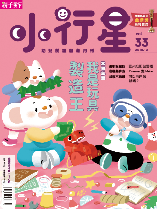 叮叮噹──叮叮噹──大家歡欣鼓舞準備迎接耶誕節。在這愛的季節裡,只能掏腰包買禮物嗎?本期《小行星幼兒誌》特別以「我是玩具製造王」為題,帶著孩子運用生活中可以取材再利用的物品,引導孩子靜下心來,思考改造的方法,動手創作出獨一無二的新玩具。從小培養Maker的創客精神,自己的玩具自己做,在做中學、玩中學,快樂學習,也能親子同樂喔!