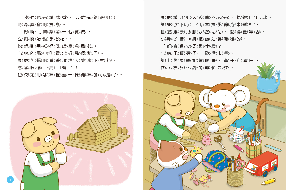 | 《小小玩具製造王》引導孩子運用生活中隨處可得的空盒、瓶罐等,化身小小Maker動手玩創意,創作出專屬的玩具。更進一步引導孩子思考這些手作玩具的科學原理,做中玩、玩中學! |