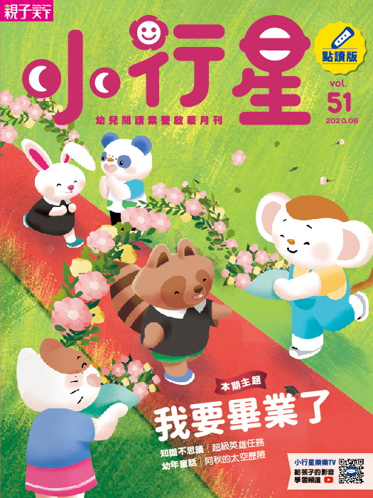 許多幼兒園會在六月畢業季舉行畢業典禮。畢業不僅是一種儀式,更是重要的成長轉捩點;而對於中、小班的小朋友而言,可能也是頭一次面對分離、學習道別。本月《小行星幼兒誌》特別以「我要畢業了」為重點主題,帶領孩子們思考「畢業」的意義、回顧成長軌跡,也學習感恩幼兒園裡所有辛苦的工作人員們,以及懂得珍惜、把握同儕之間的情誼。《小行星幼兒誌》從今年六月起,進入一個嶄新的階段,結合小行星點讀筆的使用,帶給孩子們更自主、便利的點讀化的閱讀模式!