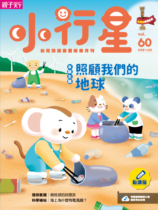 環保是當今全球重要的議題,身為地球公民,每個人都有責任共同維護環境。讓孩子從小建立環保觀念,透過不浪費資源、不亂丟垃圾、減少使用塑膠等習慣的養成,將環保行動自然而然落實於生活中。本月《小行星幼兒誌》特別以「照顧我們的地球」為重點主題,除了讓孩子了解環保的意義與重要性,也要帶著孩子身體力行,一同參與淨灘活動!還有小行星點讀ABC系列《Baby Bumblebee》,在春暖花開、草木復甦之時,一起走到戶外,認識昆蟲與自然觀察的相關單字與句子,享受大自然的美好吧!