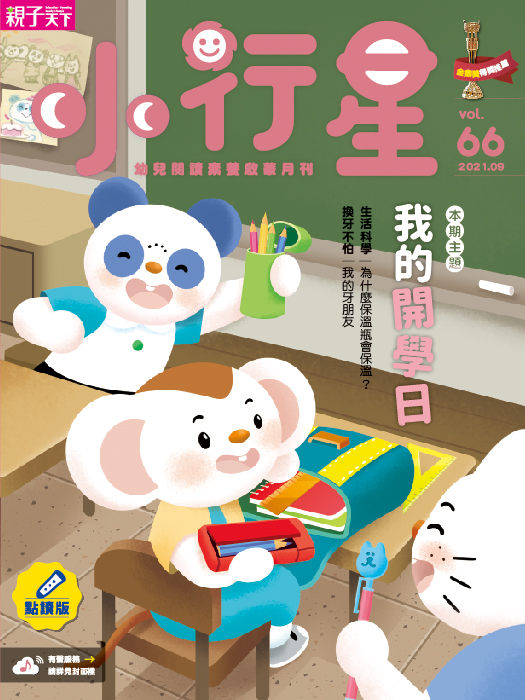| 本月特別專題「解讀幼兒行為密碼,面對入學後的人際衝突題」,協助孩子學習人際溝通的策略。也提供小行星讀本的專欄作家延伸說解,讓家長輕鬆掌握每期教養和學習重點。 |