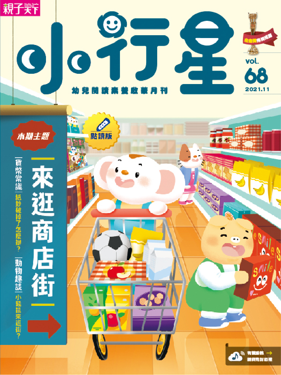 理性消費的重要,從小扎根不嫌早!本月《小行星幼兒誌》特別以「來逛商店街」為重點主題,先帶孩子認識錢幣與紙鈔,接著體會想要與需要的差異,循序漸進的培養基本又實用的理財觀念,懂得做好金錢規劃。還有小行星點讀ABC系列《This Old Man》,搭配耳熟能詳的綠油精廣告歌旋律,在哼唱韻謠、伴奏敲打中,輕鬆建立起英語基礎溝通的橋梁! |