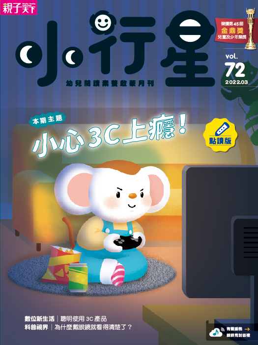 3月號《小行星幼兒誌》以「小心3C上癮!」為主題,對比人類與鼴鼠兩家的3C使用狀況,帶出身在數位時代可如何聰明運用數位產品,讓生活更便利而不焦慮!還有小行星點讀ABC系列《I Can Sing a Rainbow》,這期要帶小朋友認識各種顏色的講法!唱一唱溫柔可愛的彩虹韻謠,聽一聽愛爾蘭小精靈的故事,玩一玩豐富有趣的互動點讀遊戲,單字句型很快就能琅琅上口,學習英語也能這麼輕鬆愉快! |