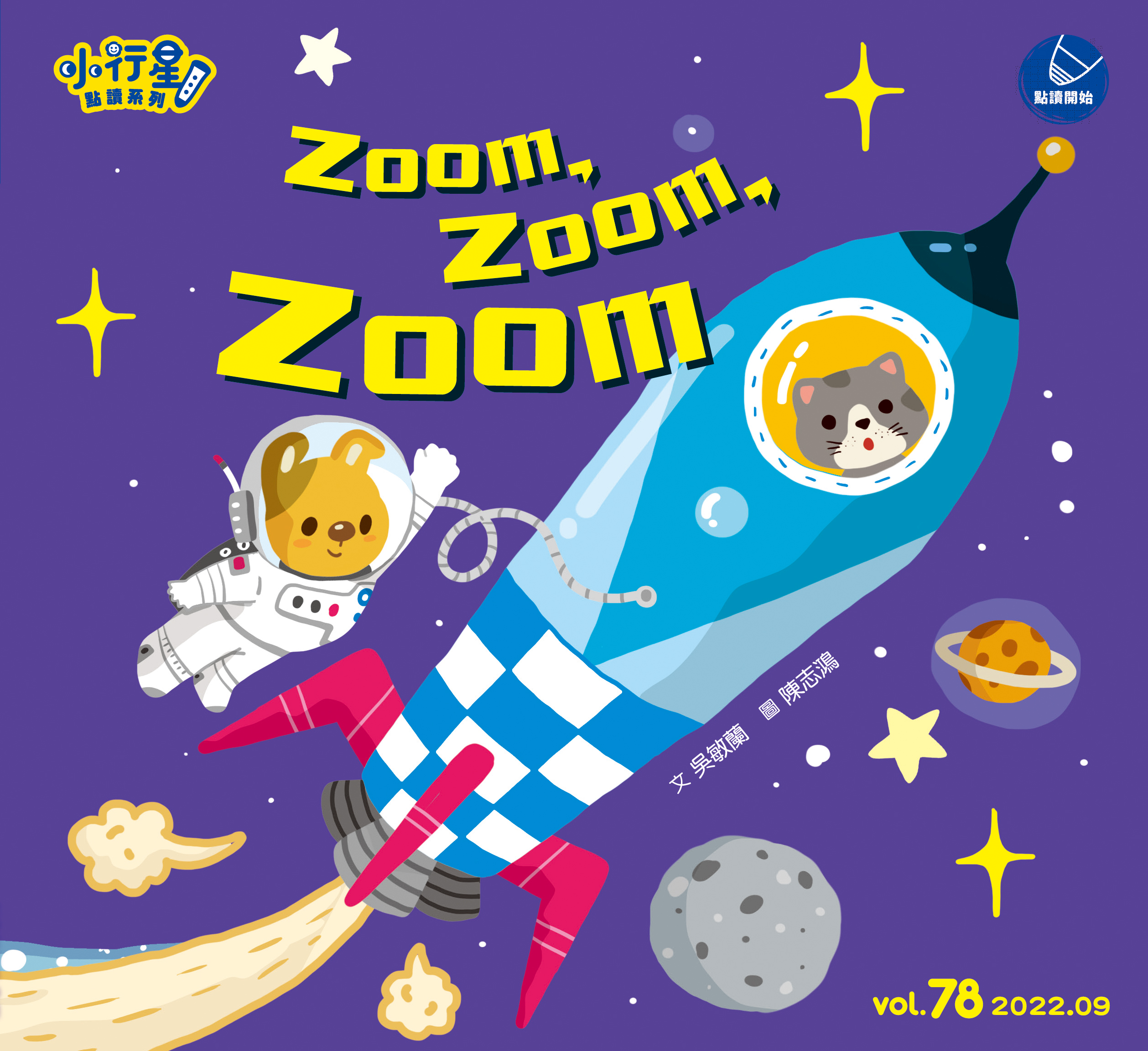 | 翻開本期小行星點讀ABC《Zoom, Zoom, Zoom》,跟著故事裡的媽媽及小女孩一起烤肉賞月,認識各種中秋活動單字,再唱首飛向宇宙的唱謠,搭上火箭朝月亮前進!別忘了最後還有英文小遊戲,邀請你駕駛太空船探索星球、享受戶外烤肉,也幫幫嫦娥和吳剛的忙!小行星點讀ABC不僅讓英語變有趣,更能帶給小朋友無可取代的閱讀樂趣! |