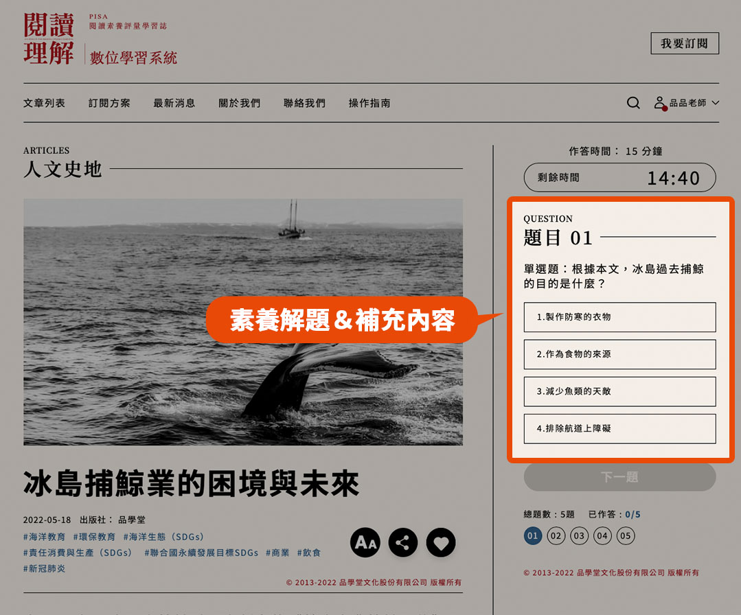 閱讀理解junior數位平臺:隨選隨看,無限次閱讀品學堂數位擴充內容
