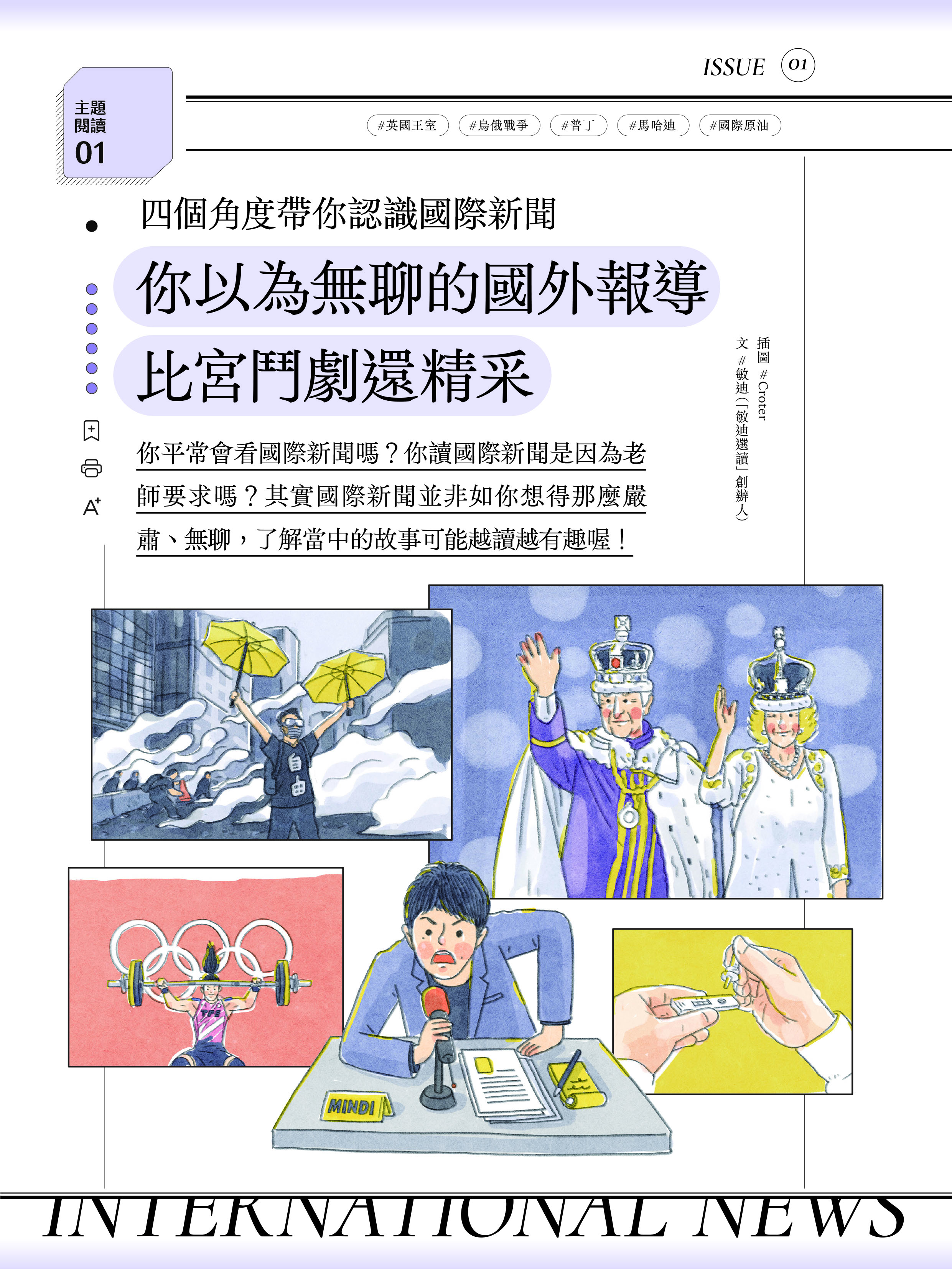 跟著國際新聞達人敏迪,帶你了解國際新聞的樣貌,學習國際新聞閱讀訣竅,一起成為「國際咖」!閱讀國際新聞其實一點都不難,而且好處多多!