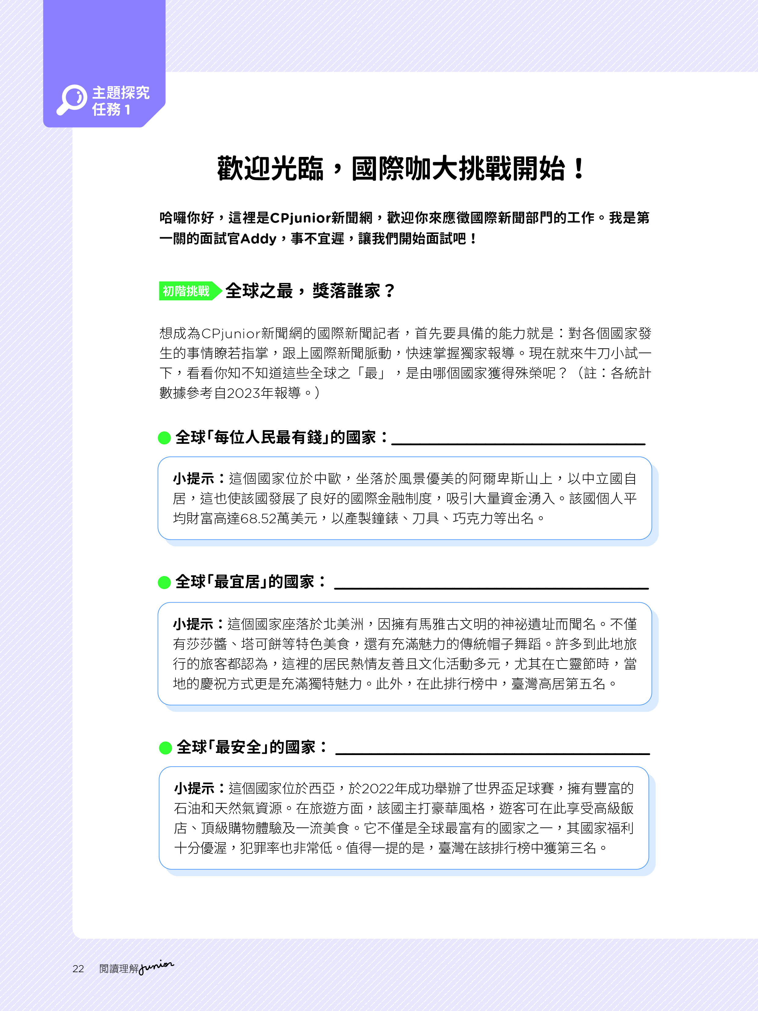 《閱讀理解junior少年版》 第6期:國際咖養成記