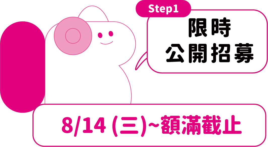 一 | 在招募期間填寫申請資料(本網頁下方申請表單)。 |
