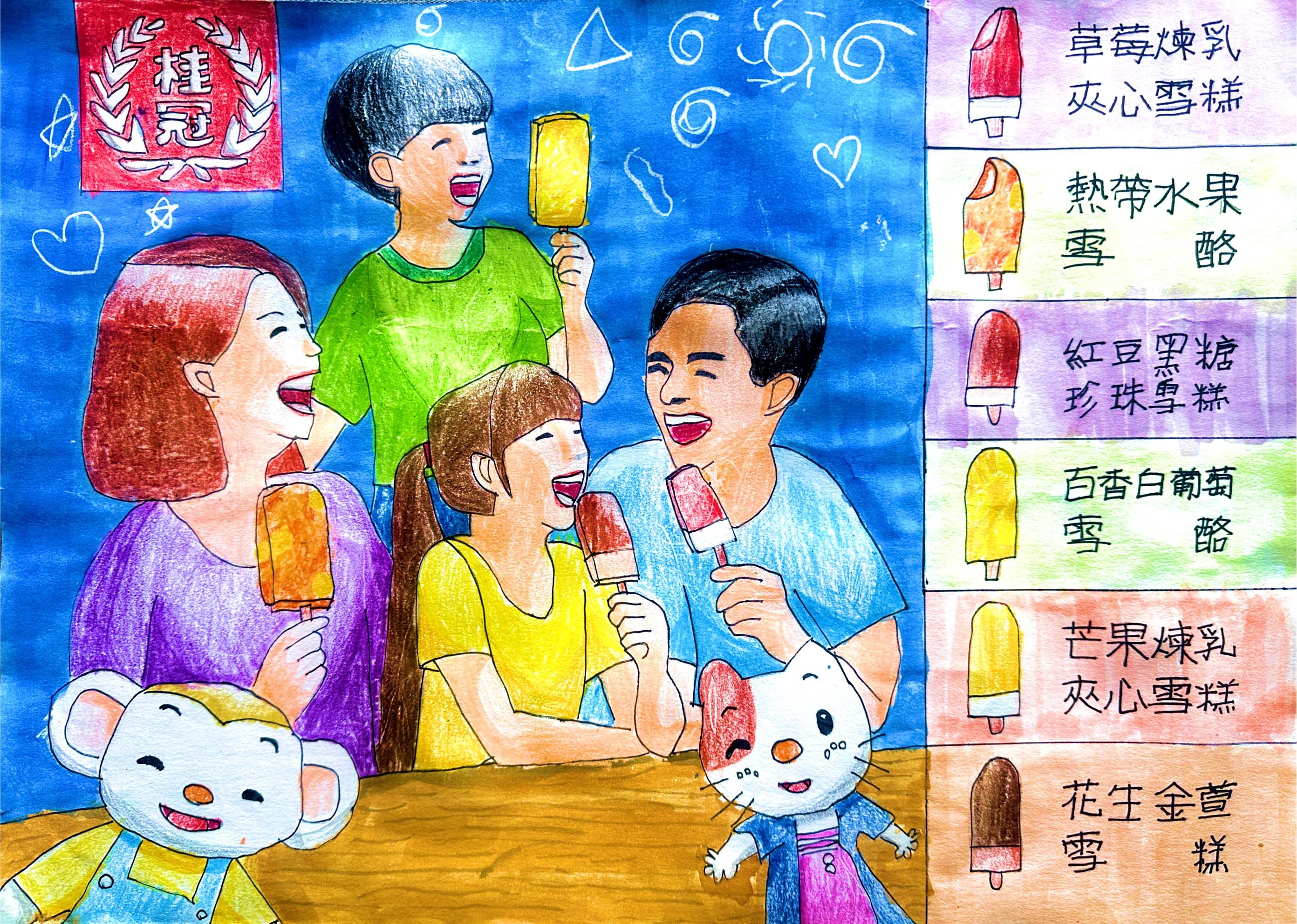 創作理念冰棒的多種口味代表了每個家庭成員的不同個性和喜好,無論是草莓煉乳的柔和甜蜜,還是紅豆黑糖珍珠的傳統風味,都像家人一樣有著獨特的風味和故事。透過這幅畫我想表達的是,無論生活多麼忙碌或平凡,與家人一起度過的時光都是無價的,而簡單的分享也能帶來滿滿的幸福感。 想對家人說的話感謝一路有你們相伴,即使是最簡單的一頓甜點,也因為有你們而變得無比美好。無論生活的季節如何變換,願我們的笑聲永遠陪伴彼此。 |