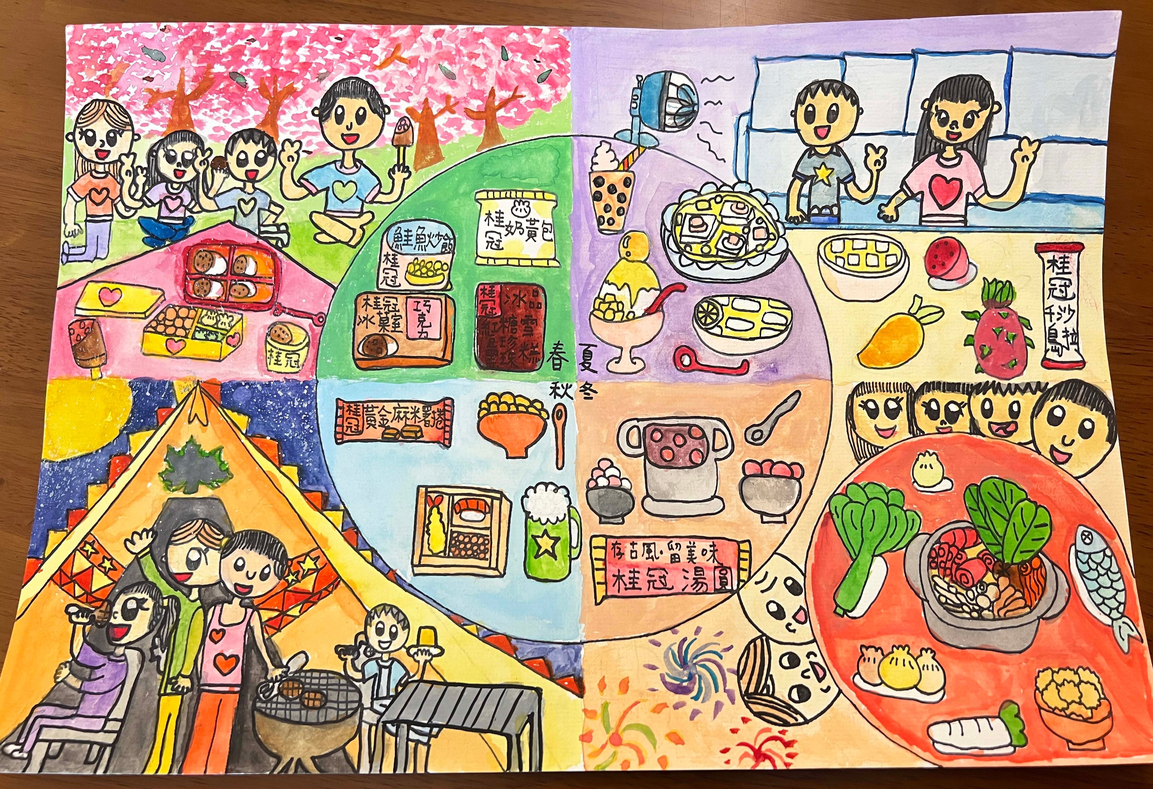 創作理念四個台灣小朋友生活在地球不同的地方,有人生活在北半球,有人生活在南半球,他們很想念家鄉台灣。春天的小朋友吃習慣肉包,夏天的小朋友吃慣百香葡萄冰棒,秋天的小朋友吃桂冠咖哩飯,冬天的小朋友用火鍋料煮了一鍋熱騰騰的火鍋,雖然他們生活在地球不同的地方,經歷不同的季節,但是桂冠食品讓他們感受家的溫暖。 想對家人說的話桂冠有很多好吃的食品,感謝爸爸媽媽陪伴我一起在餐桌上享用佳餚美食,我覺得生活在台灣很幸福、快樂,家人的陪伴是我最溫暖的回憶 |