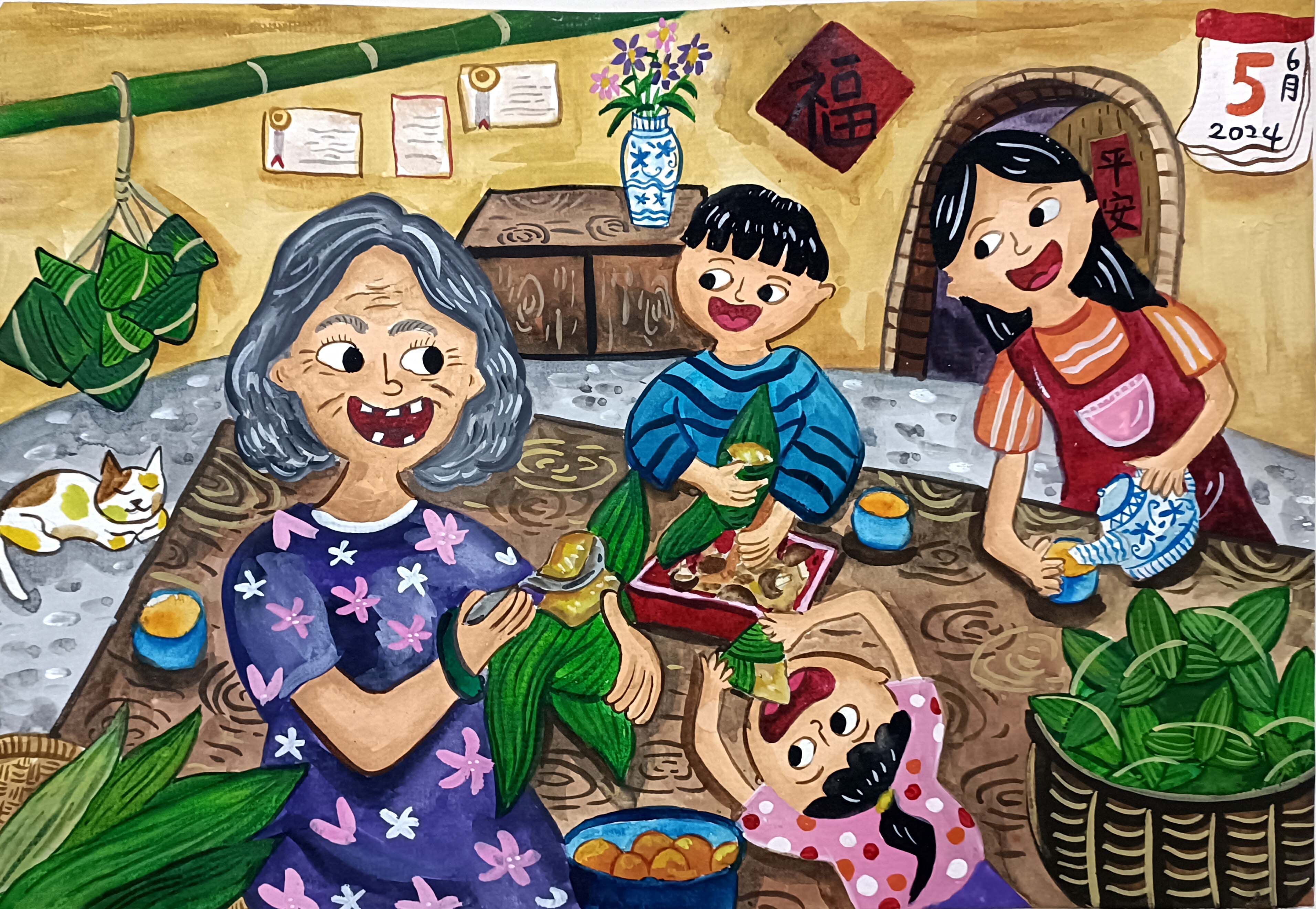 每逢端午節,我們總是會聚集在外婆家包粽子,開始一年一度的「包粽大戰」!外婆耐心指導我們如何將糯米、肉鬆、香菇等食材放在粽葉裡,同時並告訴我們端午節的由來及習俗,讓我們更加了解這個傳統節日。等待粽子蒸熟出爐,香氣撲鼻,那獨特的加香味令我口水直流,迫不及待嚐一口,真是太好吃了!