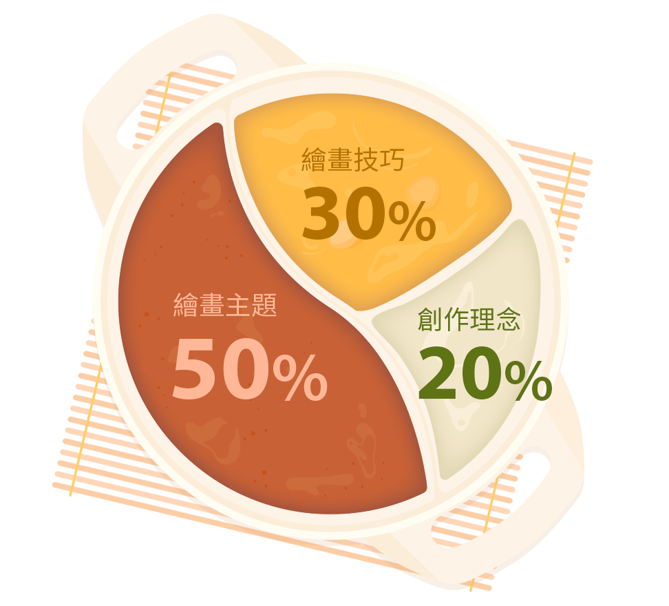 評選比重:繪畫主題(50%)、繪畫技巧(30%)、創作理念(20%)。