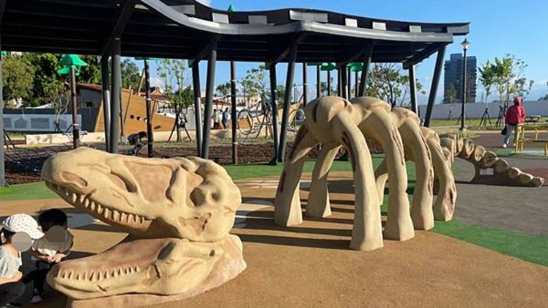 「福星公園」是2021年新建的共融式公園,遊戲場是以侏羅紀恐龍為主題!公園內除了各種遊具之外還有大型海盜船、恐龍沙坑、多樣挑戰攀爬網等,保證孩子玩到不想回家!