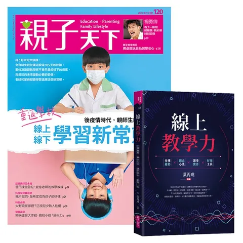 關注全球趨勢:教育界破壞式創新啟動! 向國際取經:英國現況//再多科技軟體比不上老師關鍵//遠距結合實體的教育新常態//照顧學生情緒和社交 台灣進行式:疫情讓台灣數位教學從「名詞」變「動詞」//老師要學會與線上教學影片共處//用科技學習,培養孩子一生受用的自學力 |