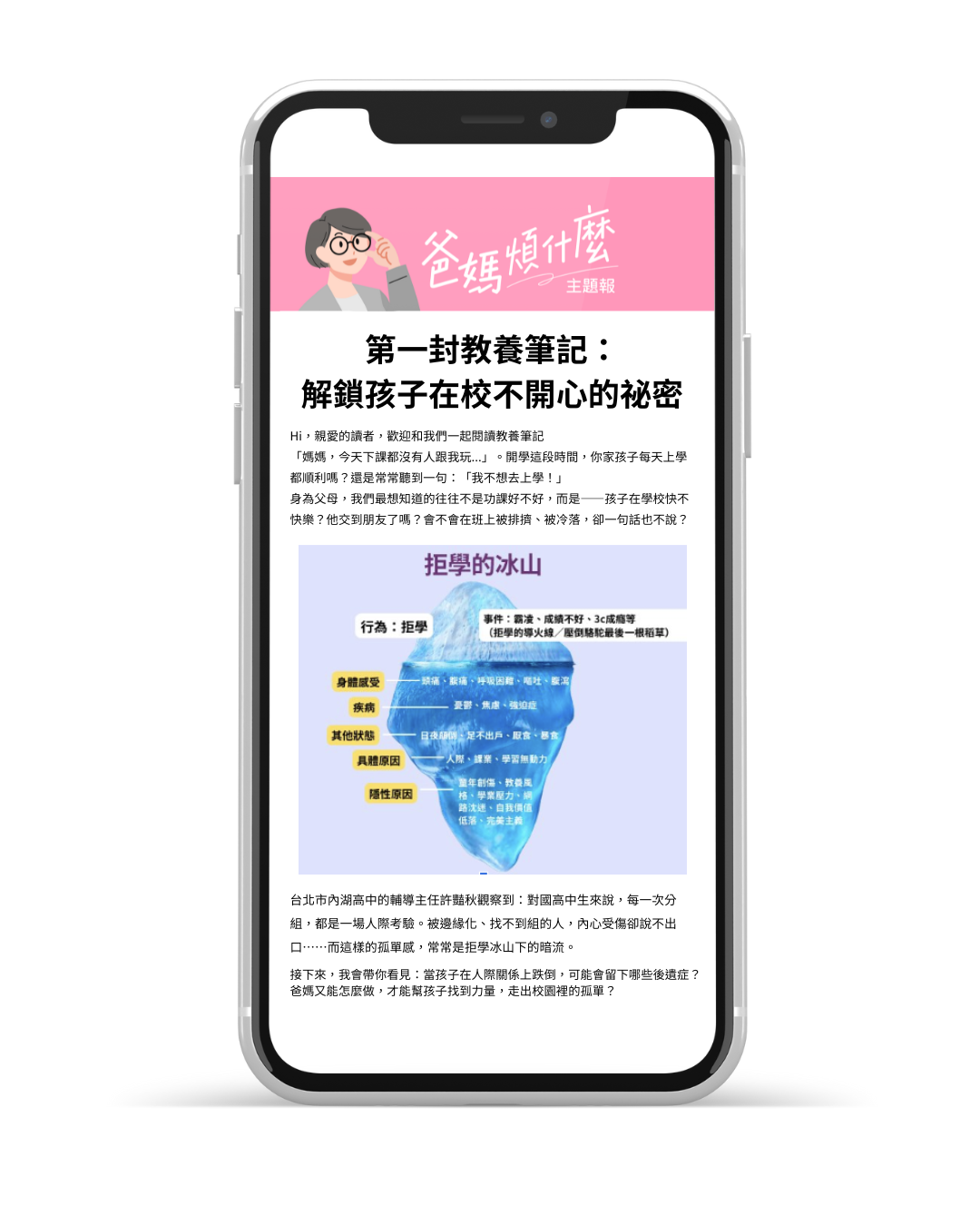 忙碌生活中我們不需要太多資訊,只需要最精華的教育教養重點筆記,現在就訂閱親子天下Premium推出的「爸媽煩什麼」主題電子報,這一期我們將與您一起了解如何幫助孩子的人際發展,連三週發送到你的信箱,3分鐘快速掌握最精華的教養筆記與資訊。