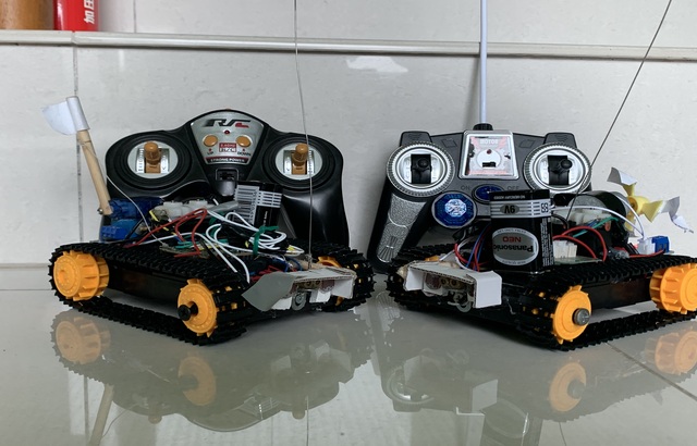 因為覺得玩手機不好,所以把手機中的戰車遊戲做成實體玩具。包括製作驅動的部分,用履帶的方式移動,之後在車頭裝了雷射發射器,和光敏電阻。